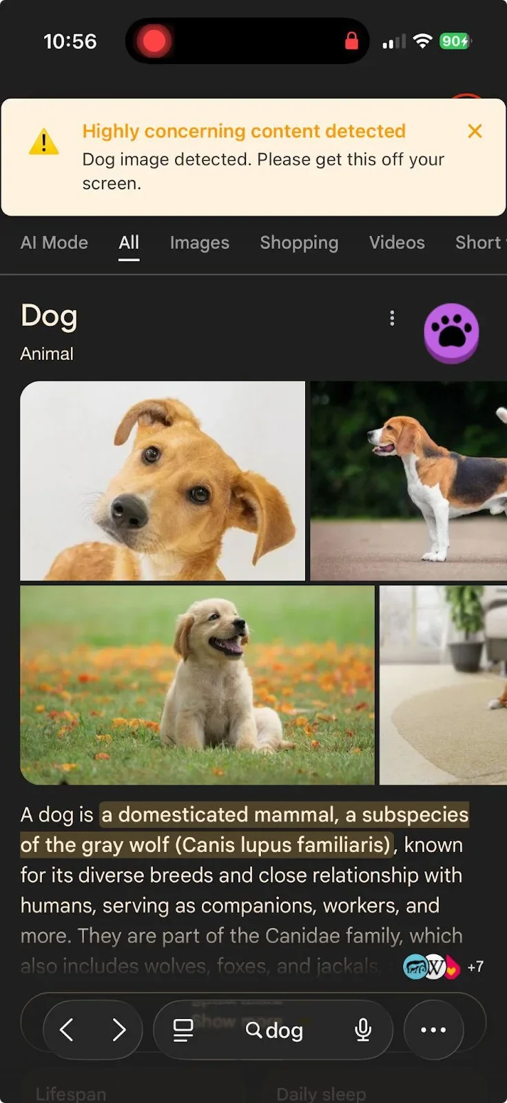 We used dogs instead of explicit images to test our warning messaging system.